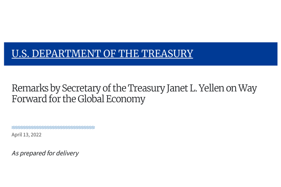 Reorganizacja światowego handlu i rynków w oparciu o interesy „bezpieczeństwa i wartości demokratyczne” może wiązać się ze znacznymi kosztami. Wojna na Ukrainie jest kluczowa –… Read More »Janet Yellen zasygnalizowała nowy i kosztowny światowy porządek gospodarczy na kolejne dekady